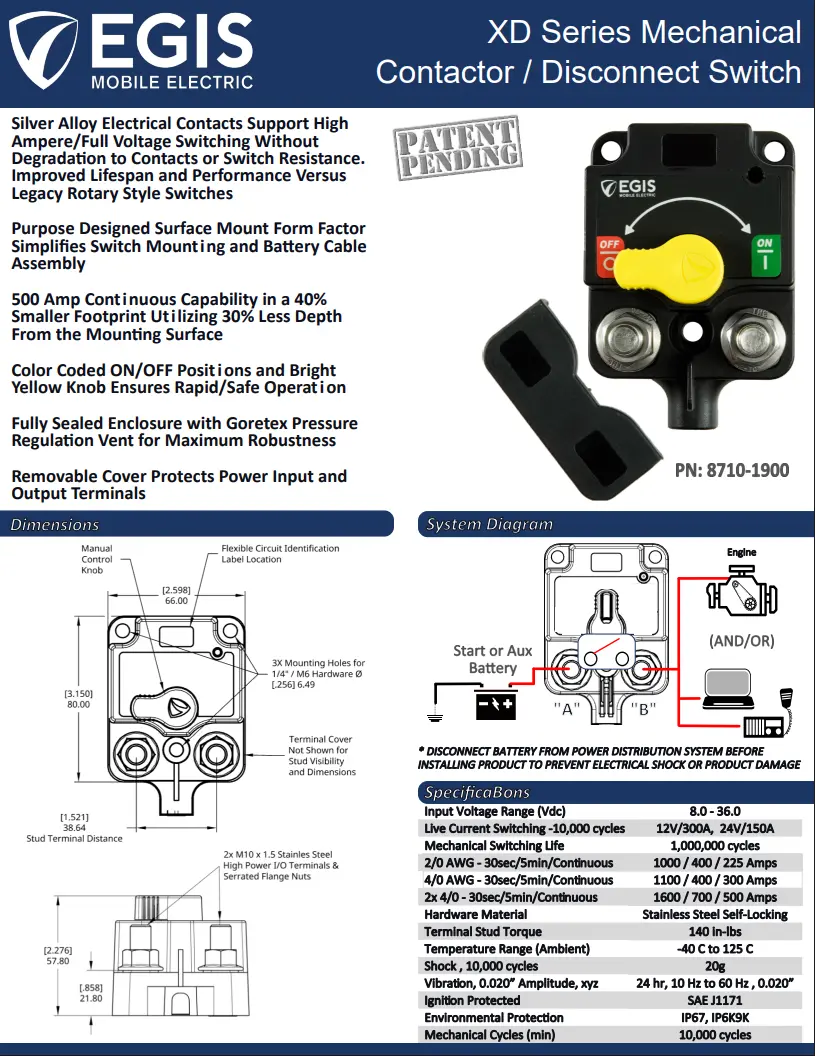 Other XD Relays also available in single/dual/triple circuit configurations with a wide variety of options: manual override, relay functions, ACR, or remote battery disconnect.