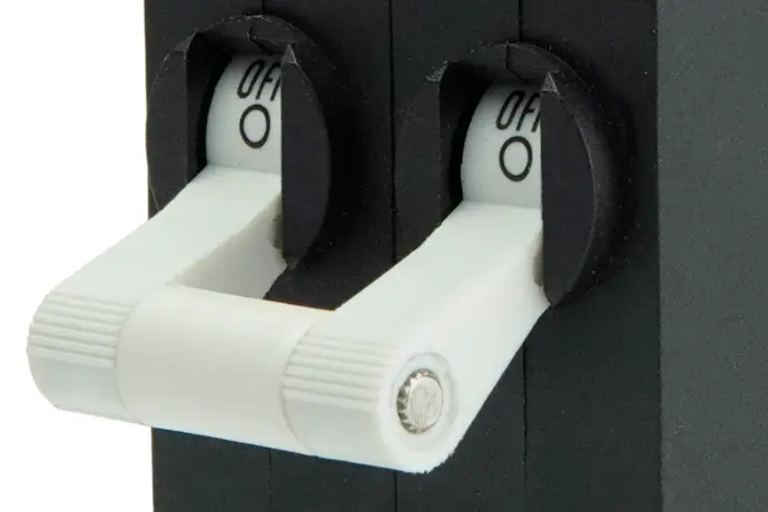 Via position of toggle actuator and ON / OFF marking.