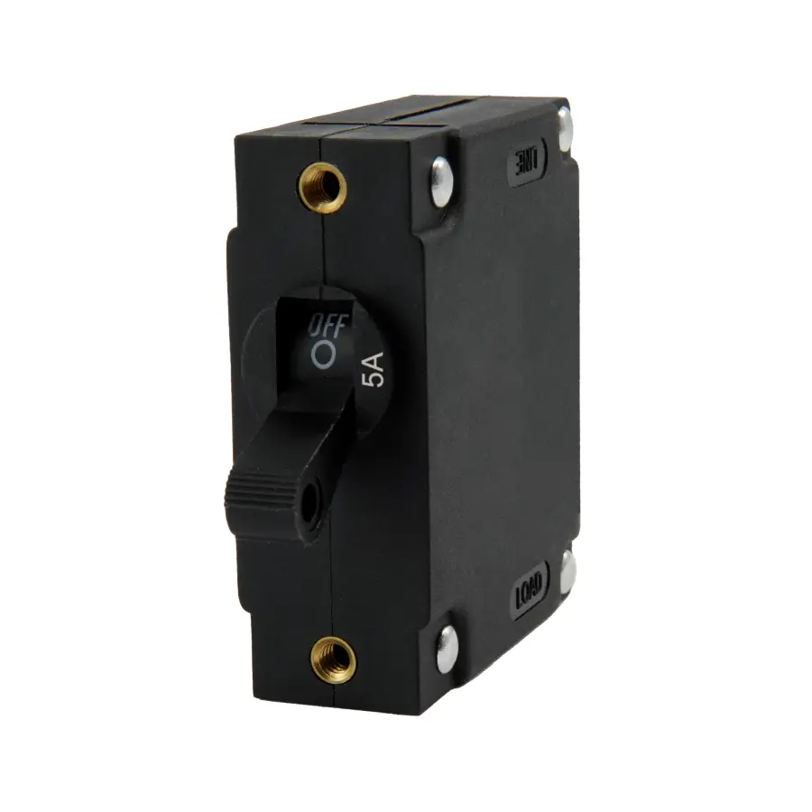 A Series Black Toggle Panel Mount Circuit Breaker, Single Pole AC/DC, 25 Amp, Bulk Pack