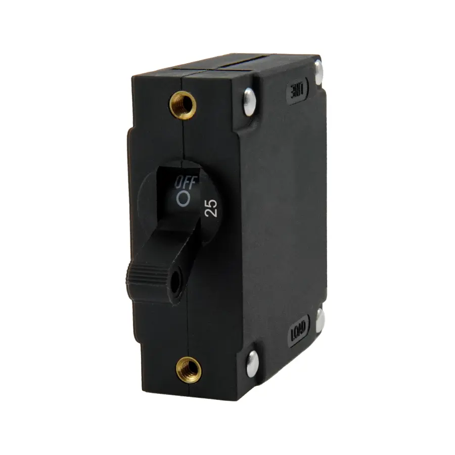 A Series Black Toggle Panel Mount Circuit Breaker, Single Pole AC/DC, 40 Amp, Bulk Pack
