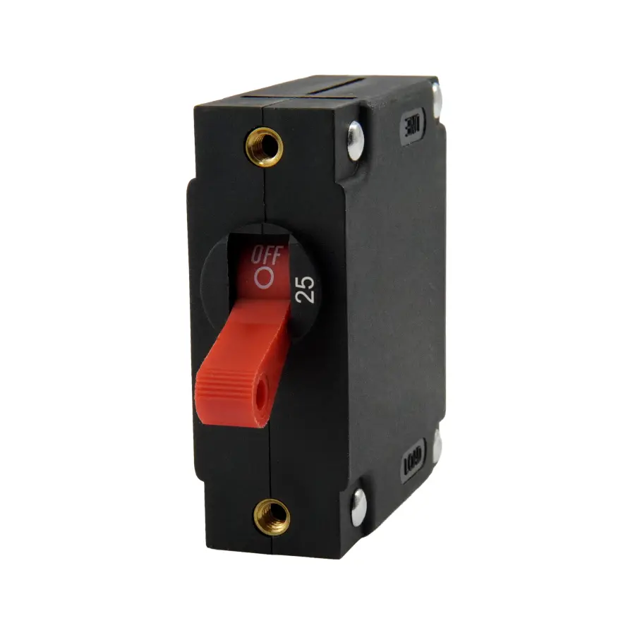 A Series Red Toggle Panel Mount Circuit Breaker, Single Pole AC/DC, 20 Amp, Bulk Pack