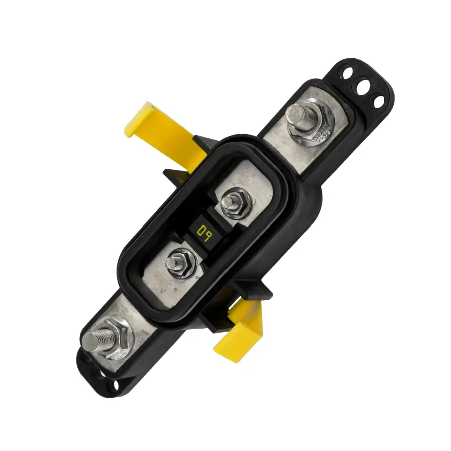Separate Stud Connections for Cable Mounting allow heavier gauge cables and their terminals to feed in and out of the fuse, that would otherwise land on the fuse tab itself.