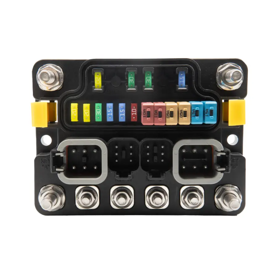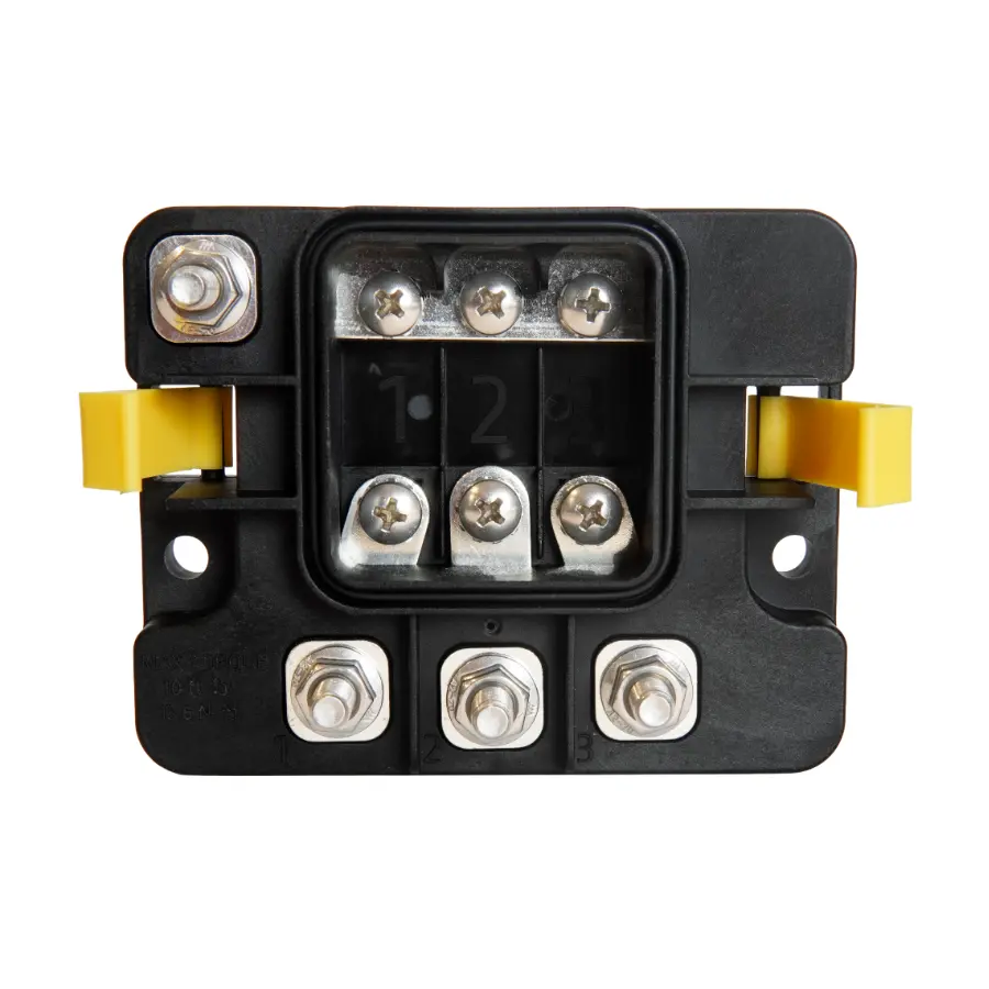 With Egis Mobile Electric MT Series Sealed Circuit Breaker / Fuse Blocks And XD Series High Amp Remote Relays Via Optional Dual, Triple & Quad Link Busbars
